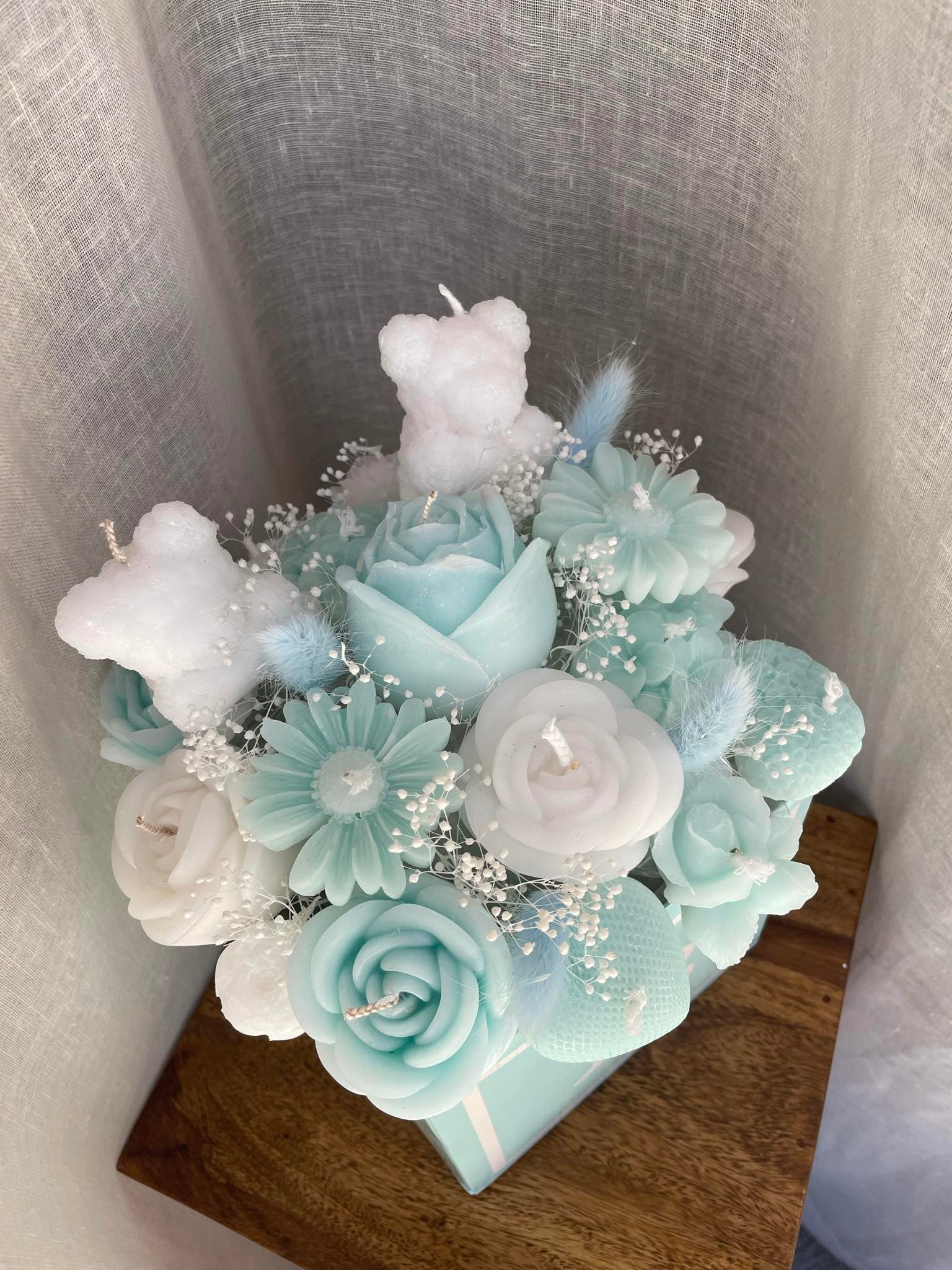 Ljusbukett gjord av stearin- och sojavax.